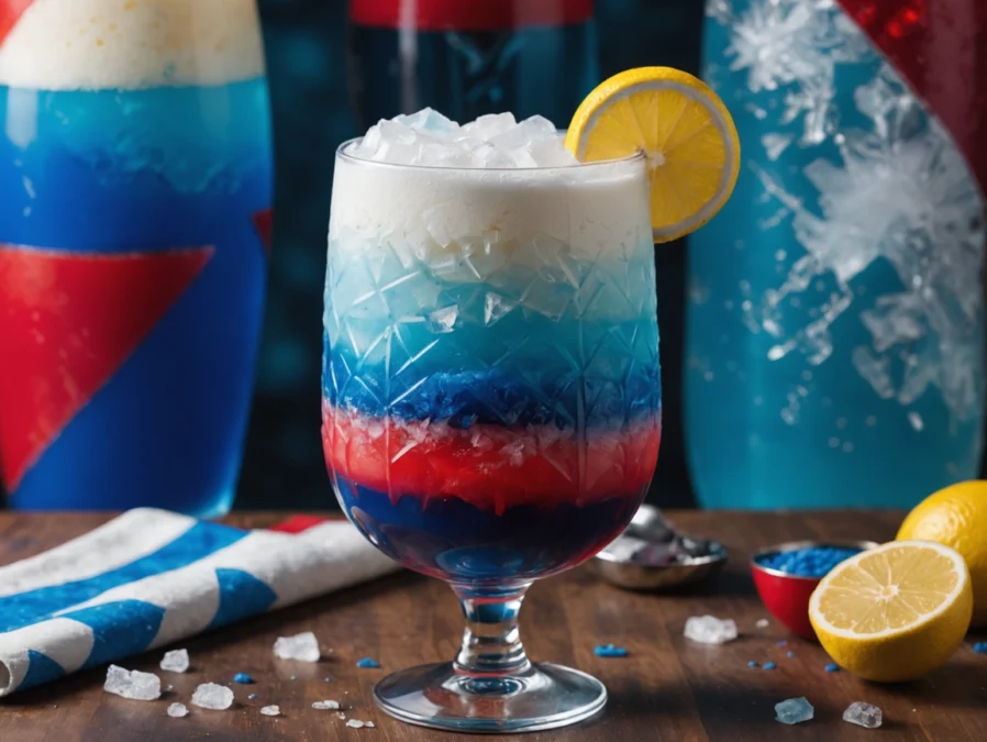 A vibrant red + blue layered frozen drink inspired by the Haitian flag.