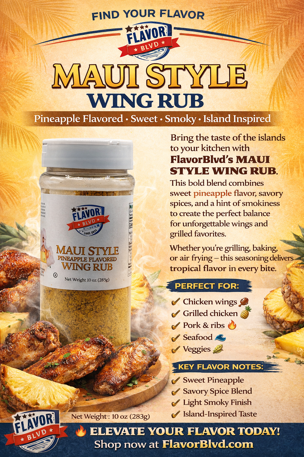 Bring the taste of the islands to your kitchen with FlavorBlvd’s Maui Style Wing Rub.